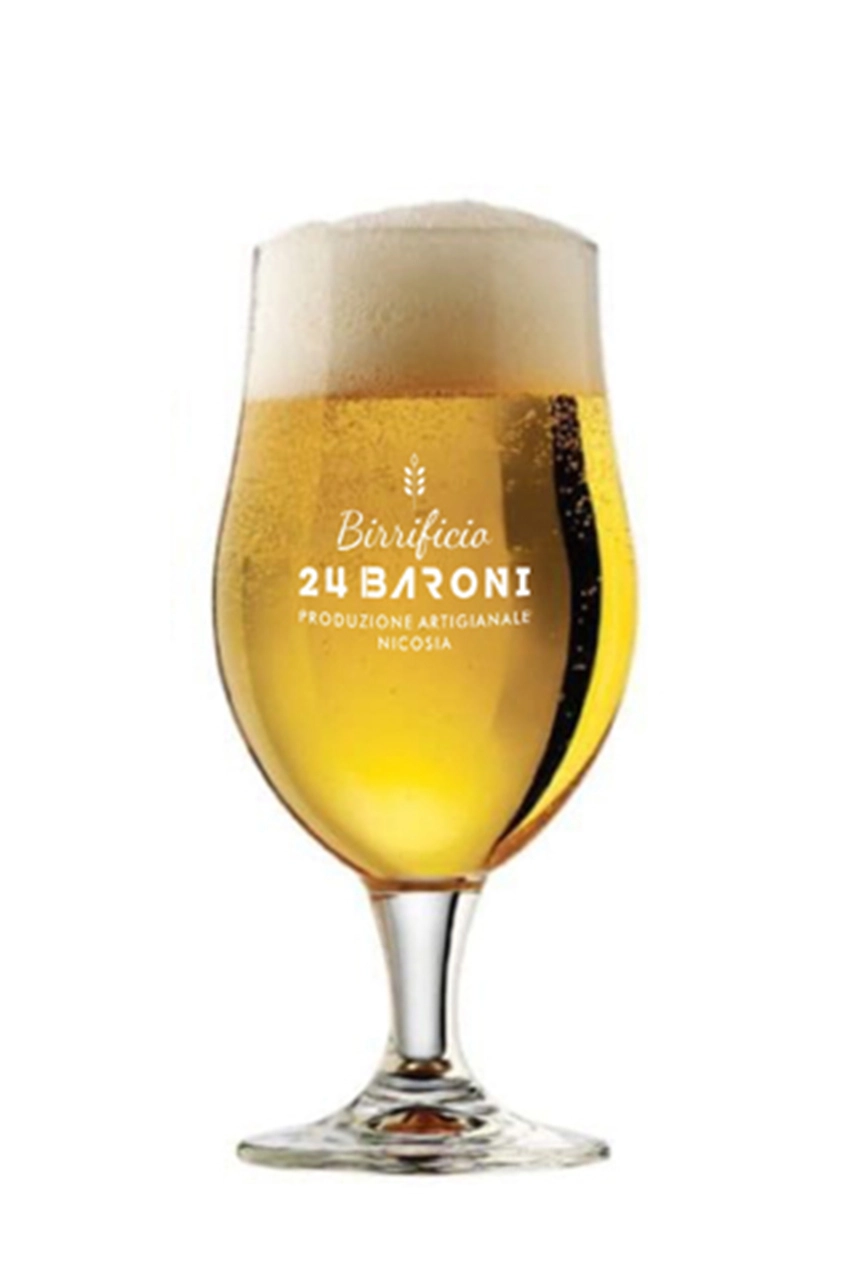 Il bicchiere calice di birra 24 Baroni cl 30 è perfetto per gustare vini e birre pregiate grazie alla sua forma elegante e alla capacità contenitivo di 30 cl.
