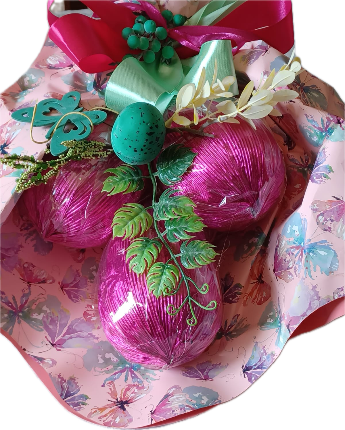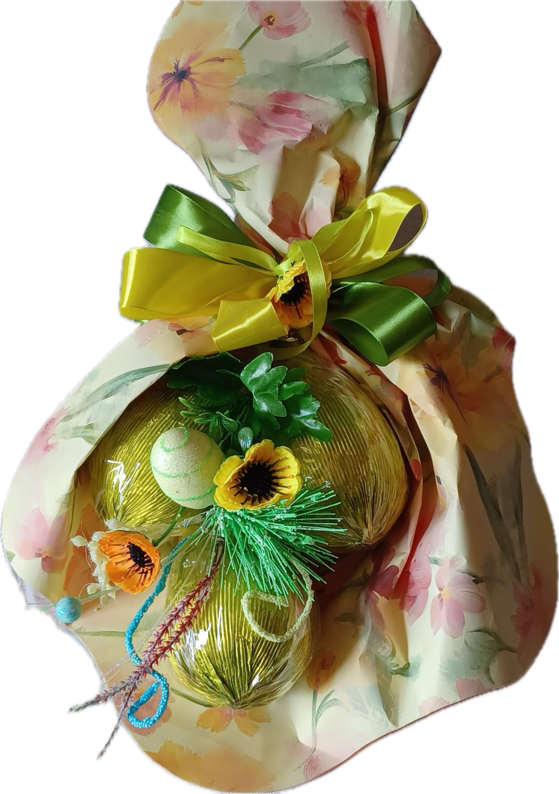 Bouquet confezione Regalo con 3 Uova da 100gr confezionate ideale per un regalo prezioso per i piu golosi.