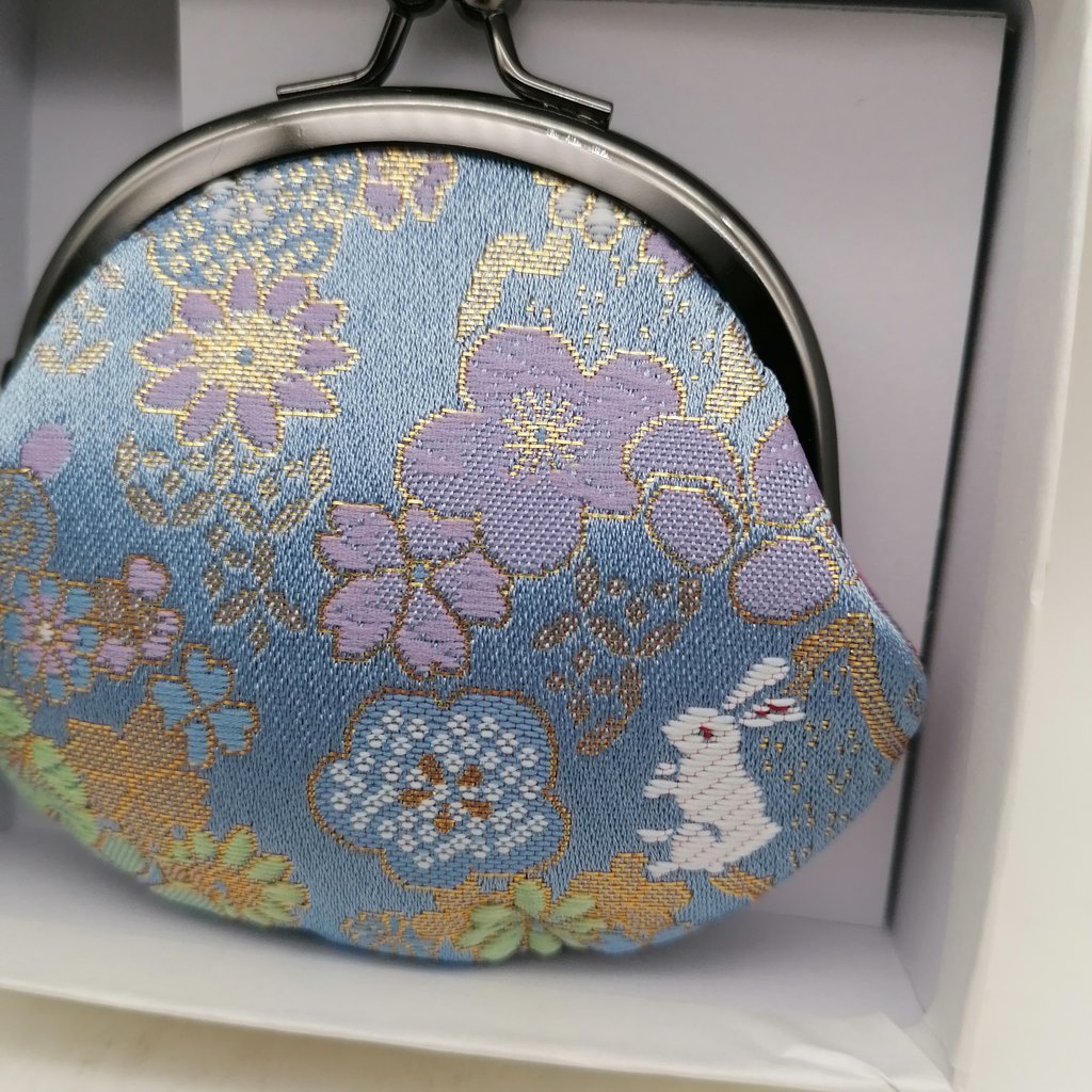 Portamonete artigianale da Kyoto S – Azzurro con fiori e coniglietti