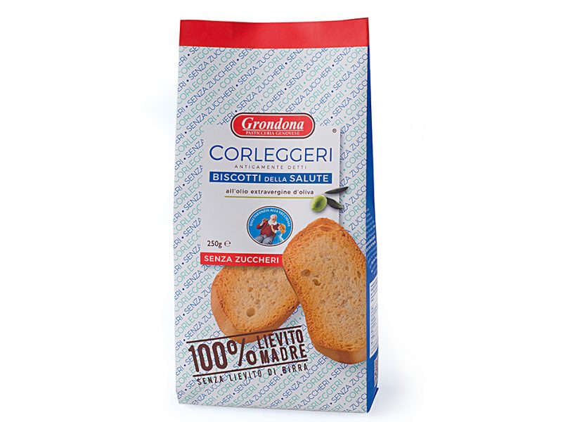 I Corleggeri sono ottenuti con il 100% di Lievito Madre, fedeli alla ricetta originale. Sono fatti senza neppure un pizzico di lievito di birra. Questa è la garanzia di Grondona.