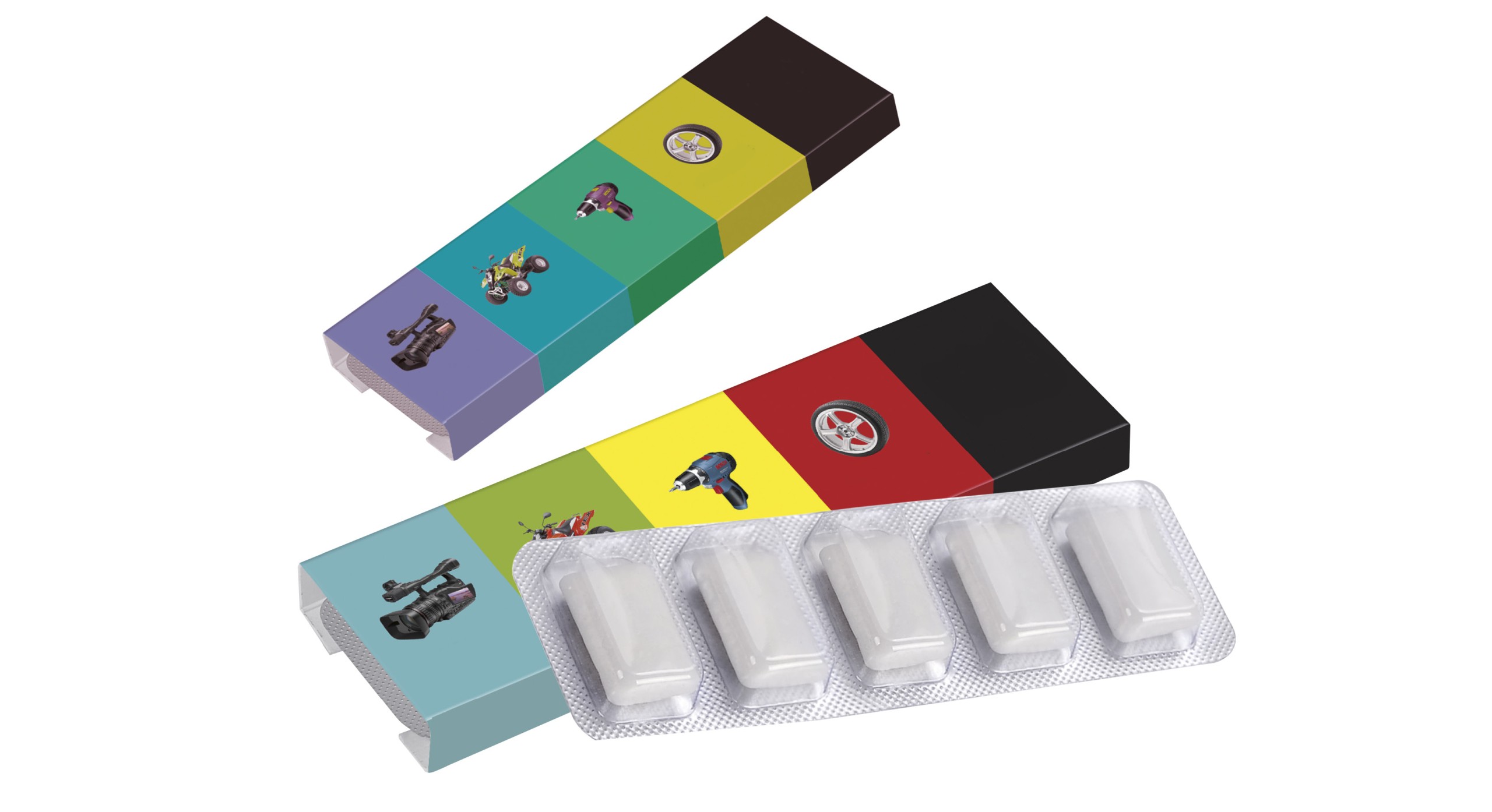 Fascetta scorrevole in cartoncino personalizzato 110x35x17 mm. Al suo interno contiene due blister da 5 chewing gum alla menta, ca 10/15 gr. cad confezione. Minimo 1000 pezzi. Data scadenza 12 mesi. Consegna ca 20 gg da approvazione bozza