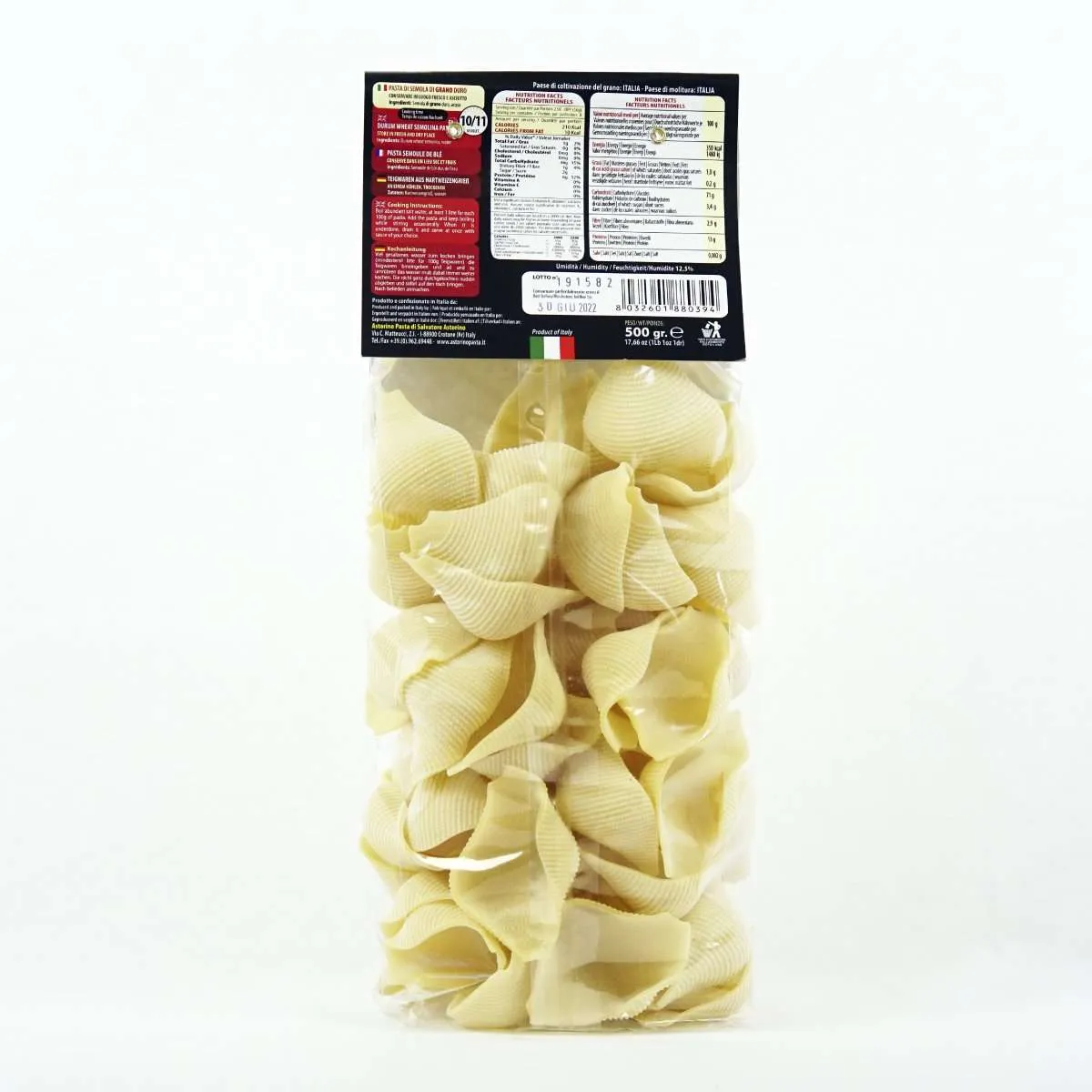 Ingredienti: Semola di grano duro 100% italiana e acqua