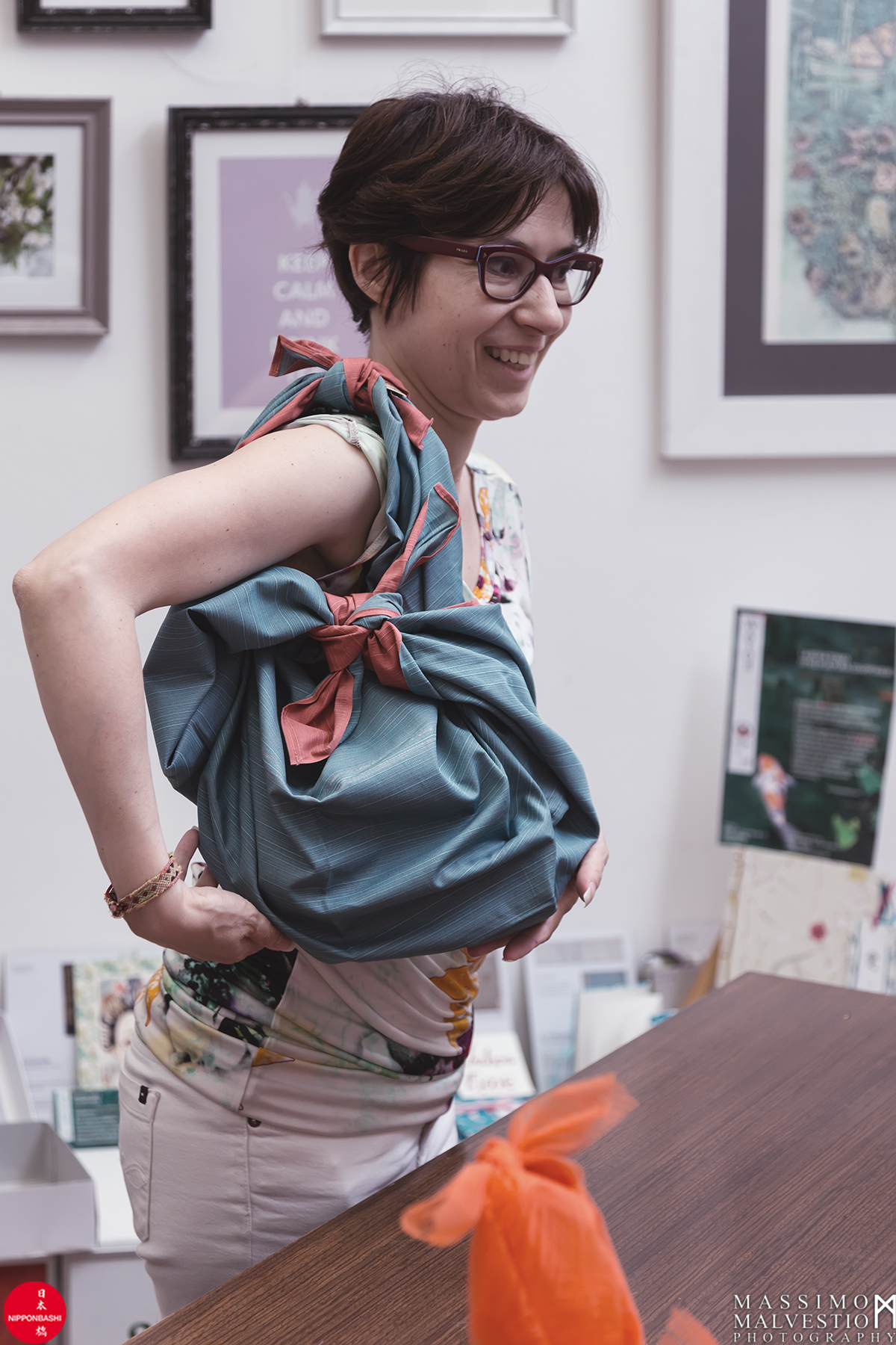 “Il furoshiki (風呂敷) è un tipico involucro quadrato di stoffa, tradizionalmente utilizzato in Giappone per trasportare vestiti, bentō, regali e altri beni.”