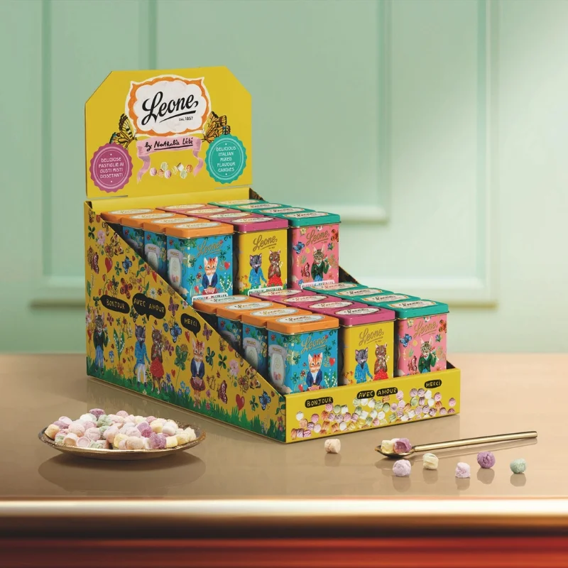 Un’esplosione di colore e creatività in formato dolce. Leone presenta l’espositore in edizione speciale realizzato in collaborazione con l’artista francese Nathalie Lété. Un oggetto da collezione che unisce l’eleganza delle pastiglie miste dissetanti Leone alla magia delle illustrazioni poetiche e sognanti.