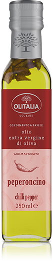 L’olio extra vergine di oliva aromatizzato al peperoncino, grazie al suo gusto gradevolmente piccante, è ideale per tutti i piatti ai quali si voglia aggiungere una nota pungente e saporita. Ideale sulla pizza e sulla pasta, rappresenta un perfetto alleato per esaltare il gusto di salse e sughi, carni rosse, formaggi e tutti i tipi di zuppe.