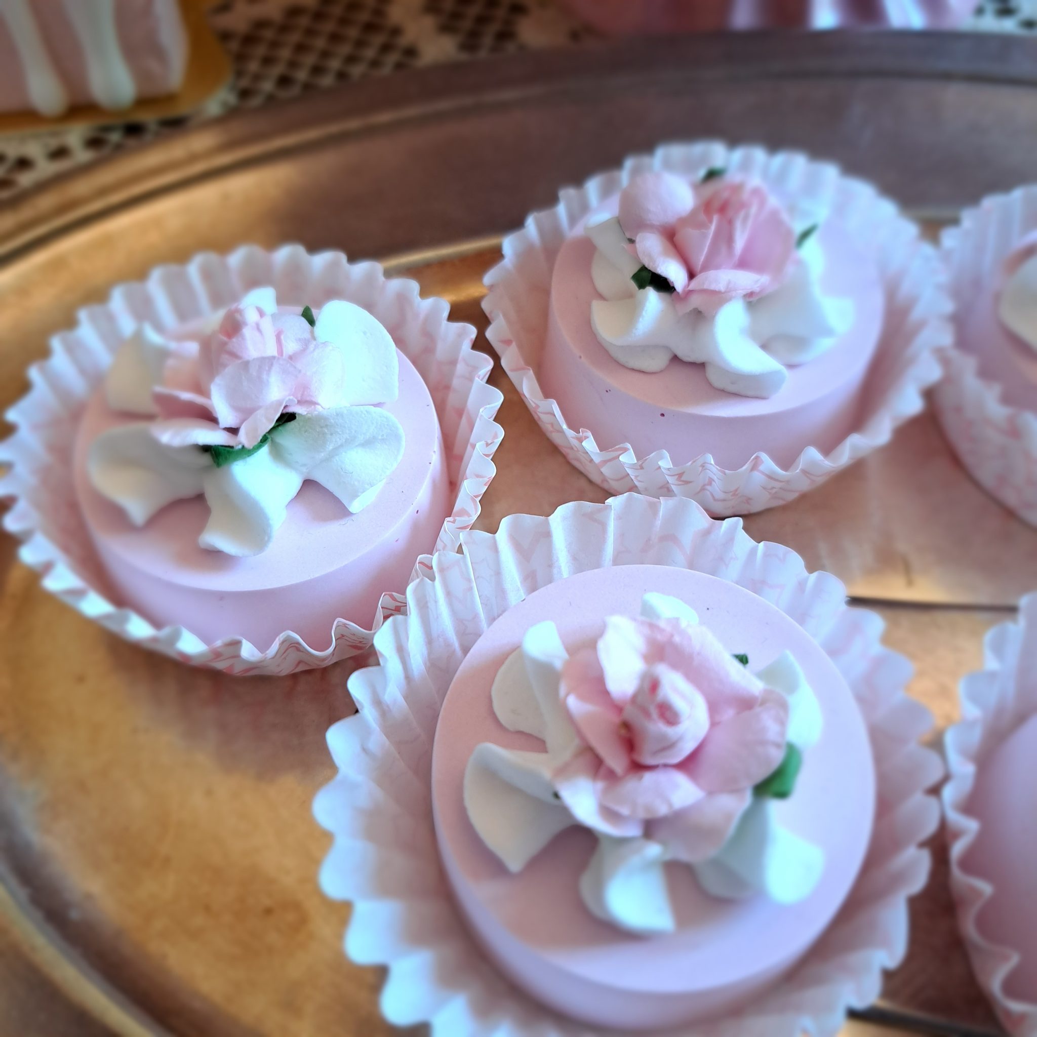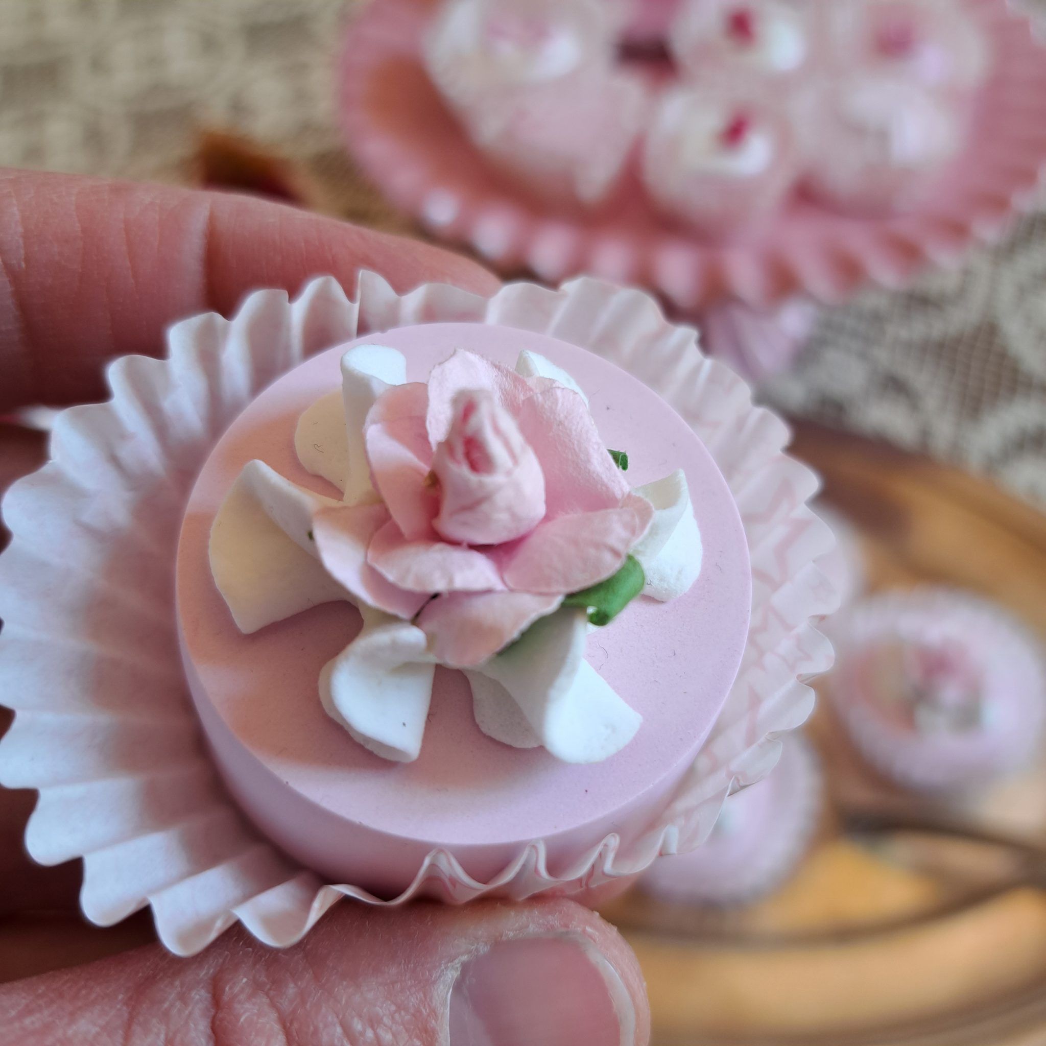 Petit Four panna rosellina rosa è un delizioso pasticcino 100% non commestibile realizzato a mano.