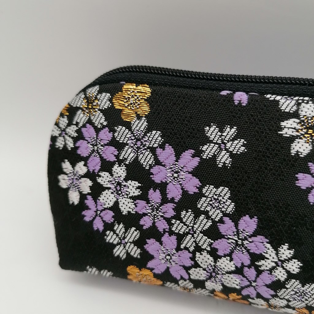 Portaocchiali con zip artigianale da Kyoto – Nero con sakura