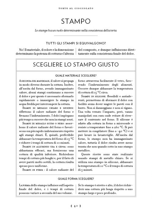 Questo volume offre confronti e analisi che portano alla comprensione più precisa delle formule che chiamiamo ricette, oltre a precise istruzioni per preparare torte al cioccolato dalle caratteristiche ben distinte, dal compatto plumcake alla leggerissima Génoise, dalla colante Cuore tenero al caramelloso Fudge.