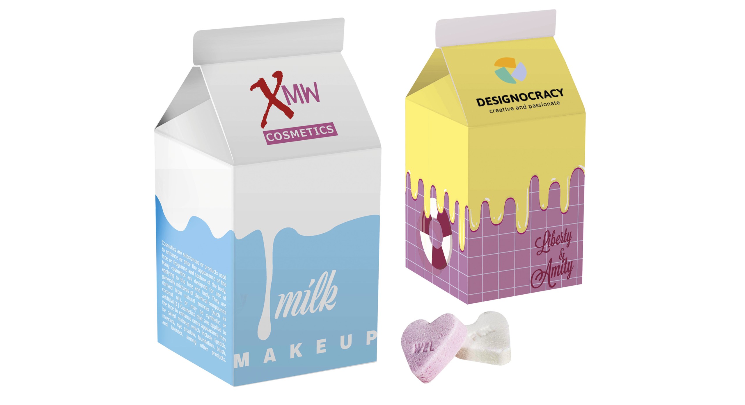 Originale scatola in cartoncino bianco che ricorda il brik di latte 50x50x100 mm, personalizzato a piu’ colori. Al suo interno 100 gr. di caramelline dure a forma di cuore. Minimo 250 scatole. Data scadenza 24 mesi. Consegna ca 20 gg da approvazione bozza