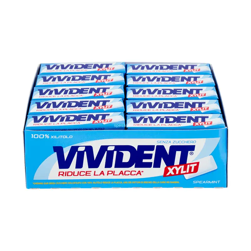 Scopri Vivident Xylit Spearmint, le chewing gum senza zucchero dal gusto intenso di menta verde (spearmint), ideali per una freschezza prolungata e un alito sempre perfetto. Grazie alla formula con Xilitolo, queste gomme aiutano a proteggere i denti e a prevenire la formazione della placca, rendendole una scelta perfetta per chi desidera unire gusto e benessere orale.