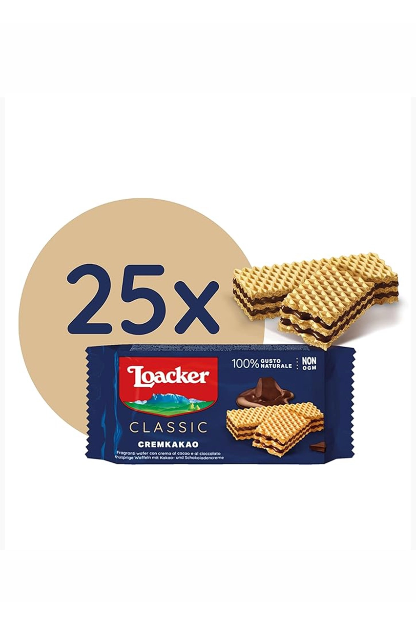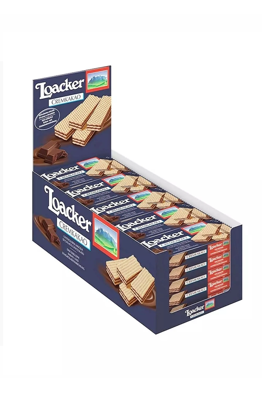 Wafer CremKakao Loacker – Box 45 gr x 25 pezzi con crema al cacao e cioccolato sono un’autentica leccornia che mette d’accordo tutti gli estimatori del cioccolato. Tre strati di fragranti cialdine contengono due strati di golosa e finissima crema, nata dal perfetto sposalizio tra cioccolato e una quantità extra di cacao. Wafer CremKakao Loacker – Box 45 gr x 25 pezzi per uno spuntino ideale da consumare a merenda o a metà mattina, che scalda i cuori e non appesantisce. Il pratico espositore da 25 confezioni che si espone facilmente sul banco o in avancassa è proprio un invito all’acquisto. I vostri clienti vi ringrazieranno!