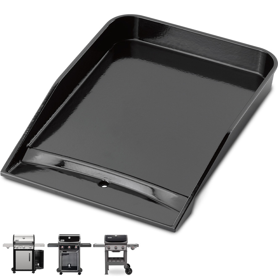 La piastra di ghisa Premium Weber ha una lucida superficie di porcellana smaltata che è facile da pulire e non richiede condimenti. La sua struttura di ghisa permette una distribuzione uniforme del calore e mantiene la temperatura al cibo senza bruciarlo. La superficie di cottura leggermente obliqua fa scendere gli eccessi di liquidi allontanandoli dal cibo. Questa piastra può sostituire una griglia della serie Weber Spirit 300.
