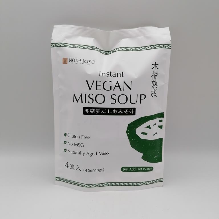 Questa zuppa di miso istantanea è fatta con soli ingredienti vegetali, come l’alga kombu, ed è adatta alle diete vegetariane e vegane. Inoltre è senza glutine e non contiene né additivi né OGM. Il preparato è costituito da 2 sacchettini, uno contenente miso rosso akadashi, prodotto con soia fermentata lentamente per oltre un anno e mezzo in botti di cedro, l’altro contenente gli ingredienti disidratati per condire la zuppa (cipollotto, tofu fritto, alghe wakame).
